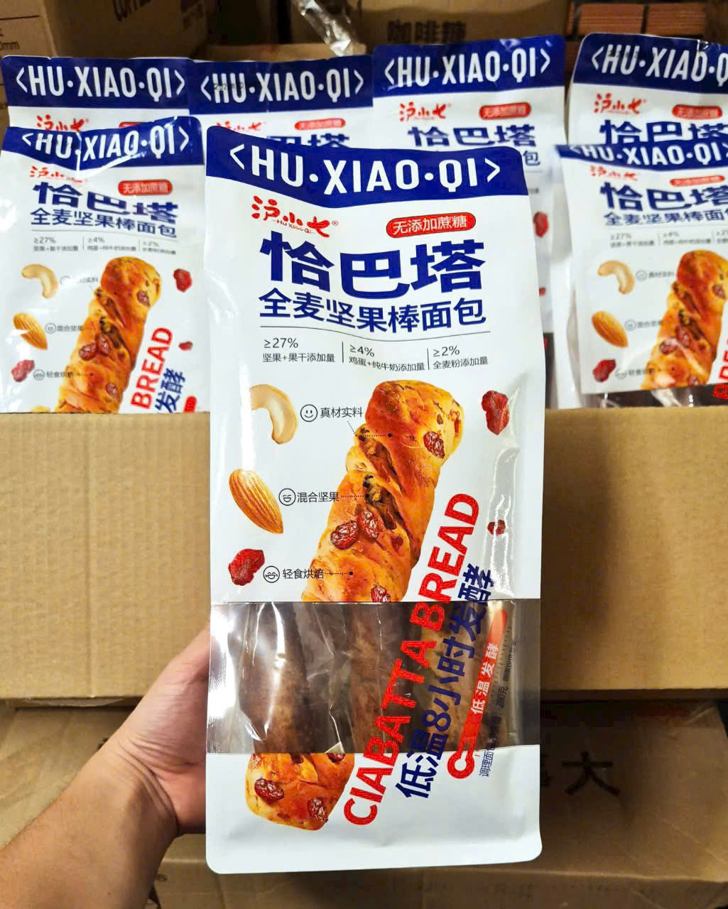Bánh Mì Dài Nguyên Hạt Nhân Nho Khô Hạt Điều Hạnh Nhân 280g Hu Xiao Qi