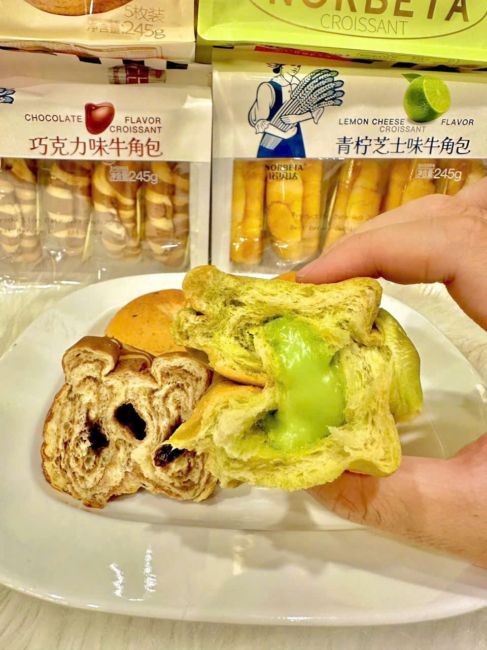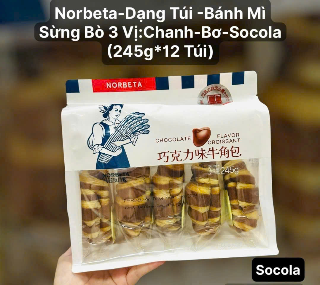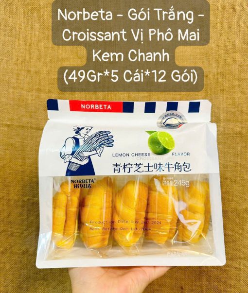 Bánh Mì Tươi Sừng Bò Nhân Socola và Phô Mai Chanh Croissant Norbeta Bịch 5 Bánh 245g