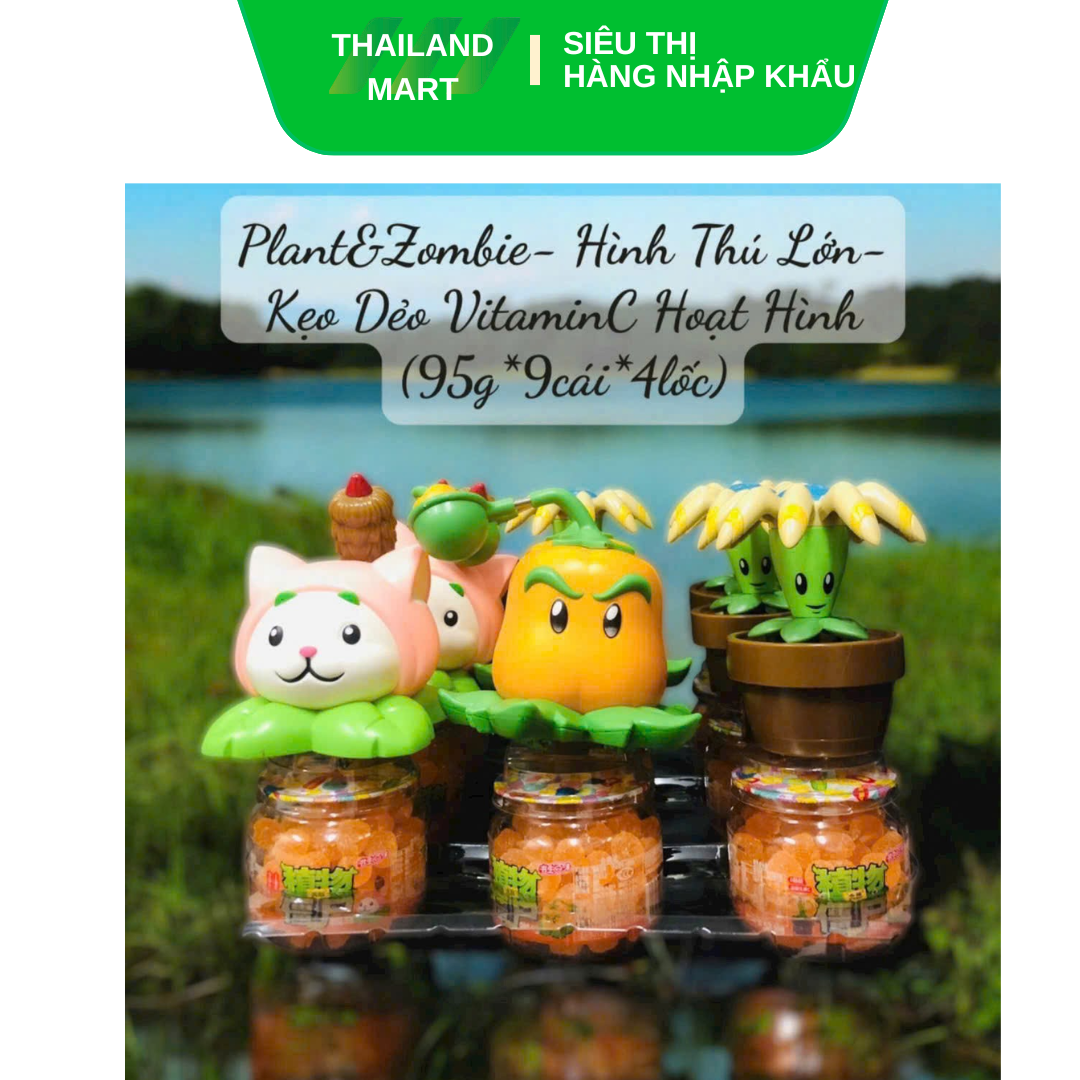 Bộ kẹo dẻo Plant & Zombie với thiết kế hũ thủy tinh + nắp mô hình thú hoạt hình cực xinh, thích hợp cho bé vừa ăn kẹo vừa sưu tầm.