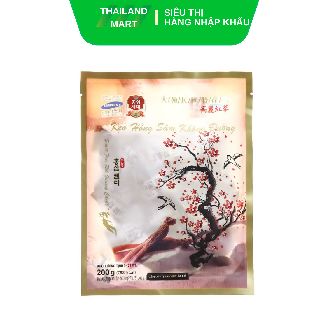 Kẹo hồng sâm không đường red ginseng candy Cheonnyeonae gói 200g