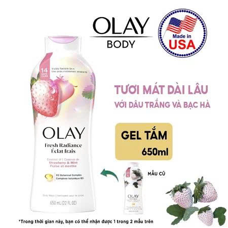 – Sữa tắm dạng Gel Olay hương Dâu Trắng và Bạc Hà thanh mát, ngọt ngào, năng động, không gây nhờn rít da, cấp nước giúp da luôn thơm mịn và thư giãn